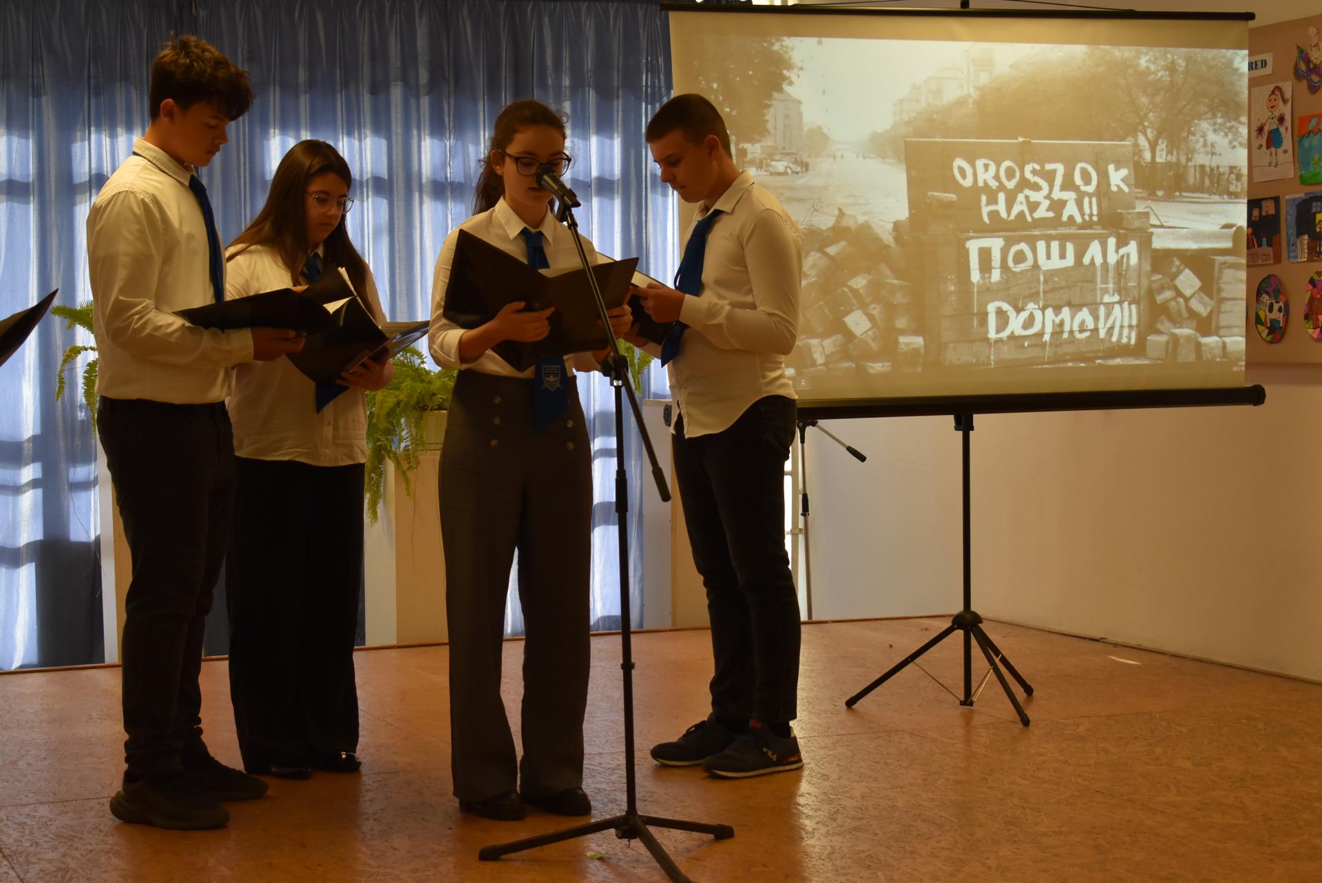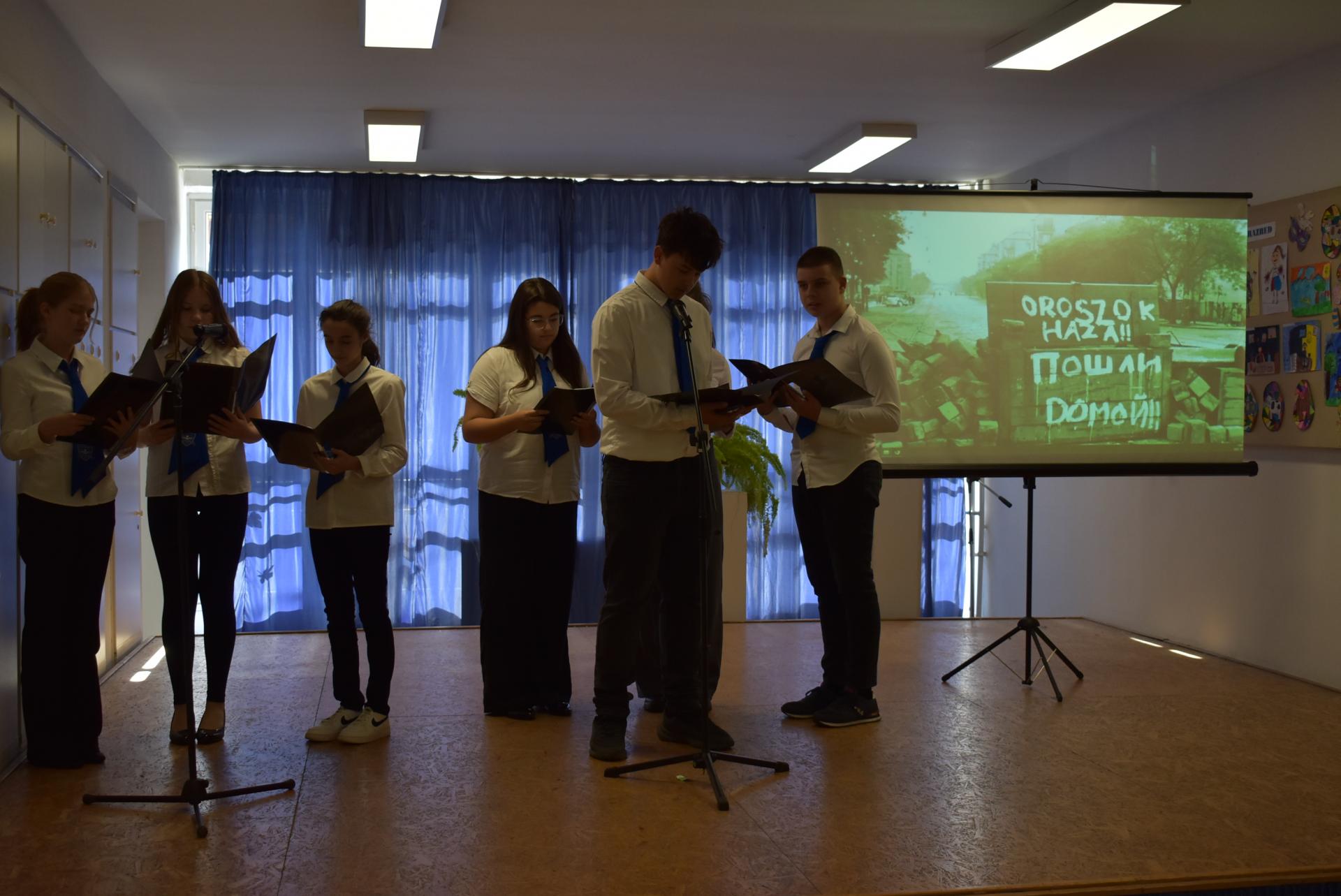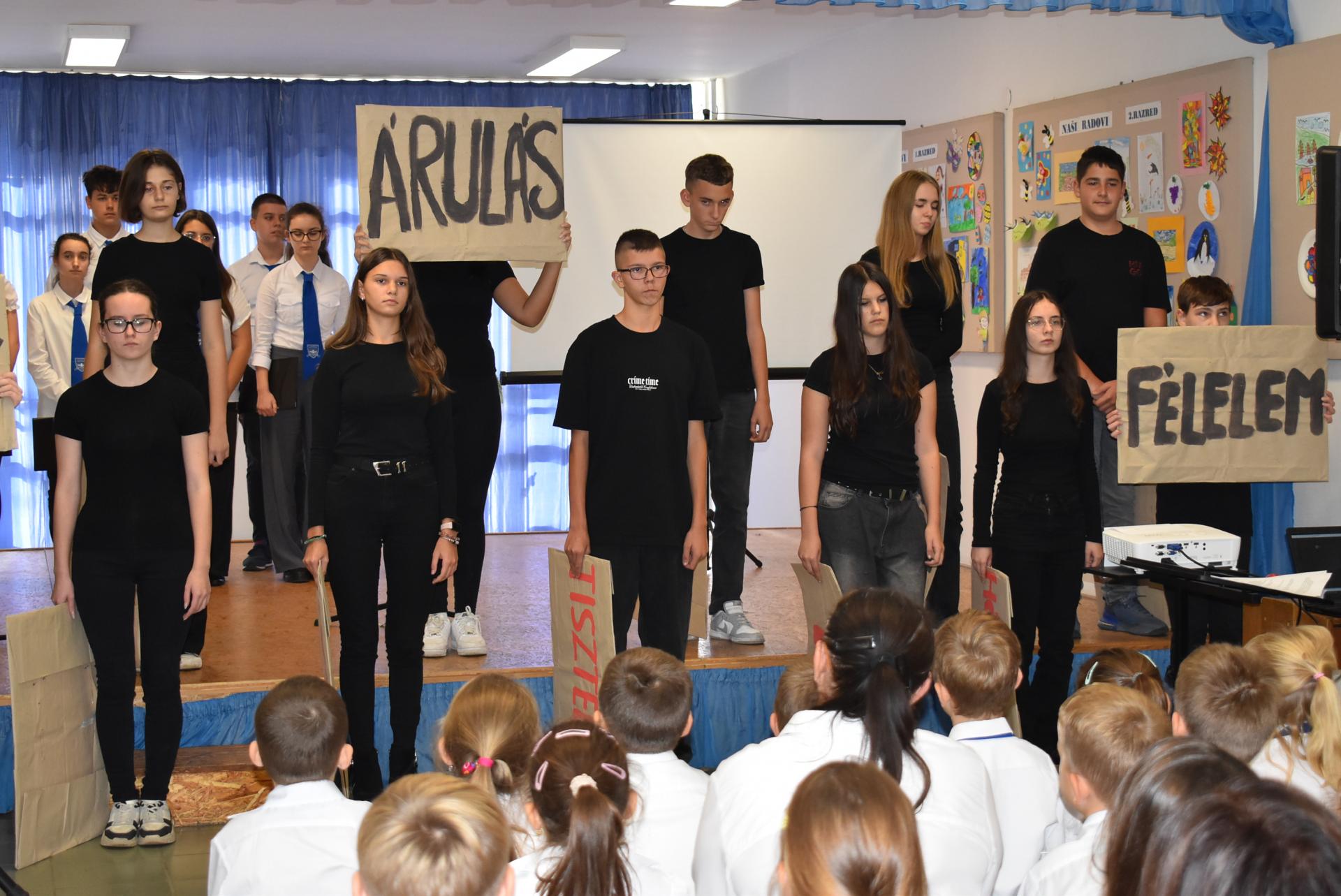 Hírek 1956.október 23-i megemlékezés iskolánkban - 2025 2025. október 22., szerda @ 16:01 Iskolánk 8. osztályos tanulói ünnepi megemlékezéssel készültek az 1956. október 23-i forradalom és szabadságharc évfordulójára. Felkészítő pedagógus: Póczak Eszter Kapcsolódó galéria 1956.október 23-i megemlékezés iskolánkban - 2025 Megosztás