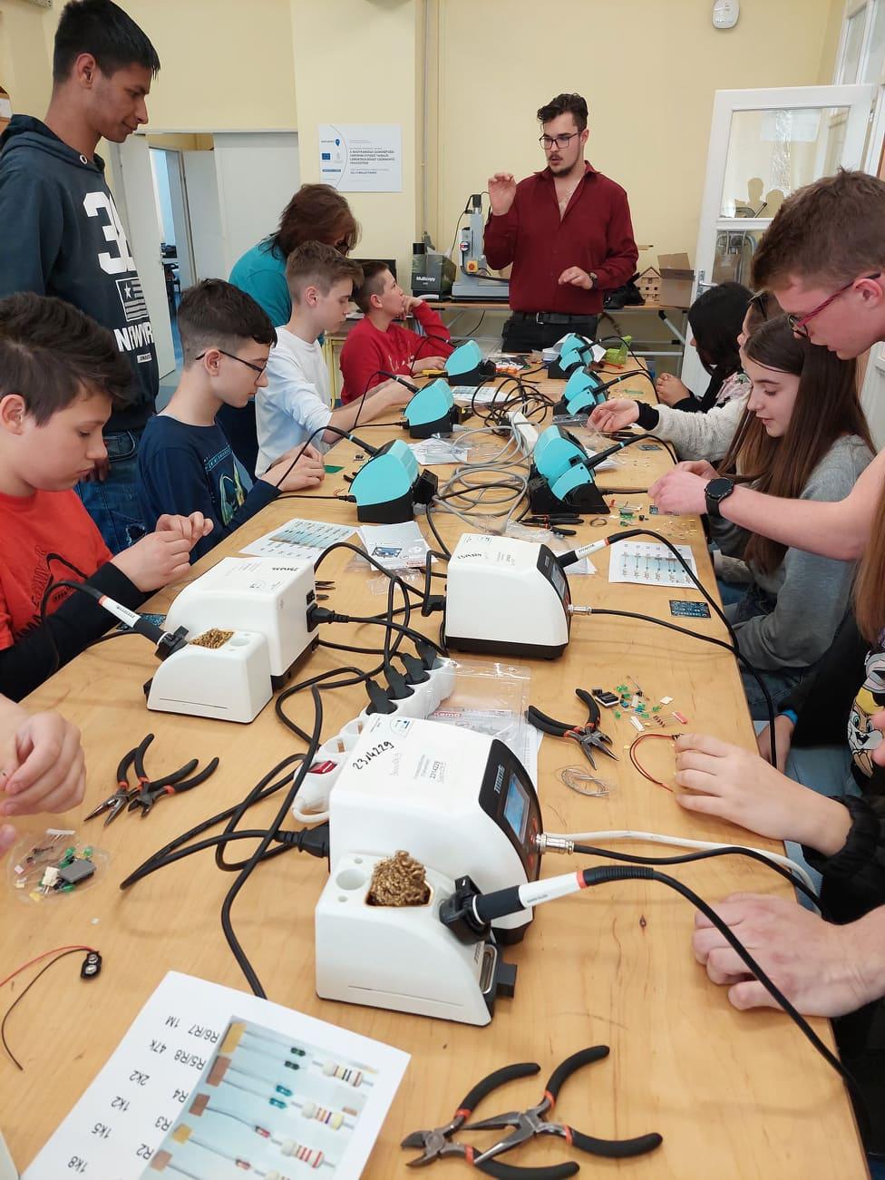 Iskolánk 7. osztályos tanulói Digitális Közösségi Alkotóműhely (DKA) foglalkozáson vettek részt Nagykanizsán, ahol elektromos dobókockát készítettek forrasztással, aprólékos, precíz munkával. Tartalmas és nagyon érdekes program volt számukra.