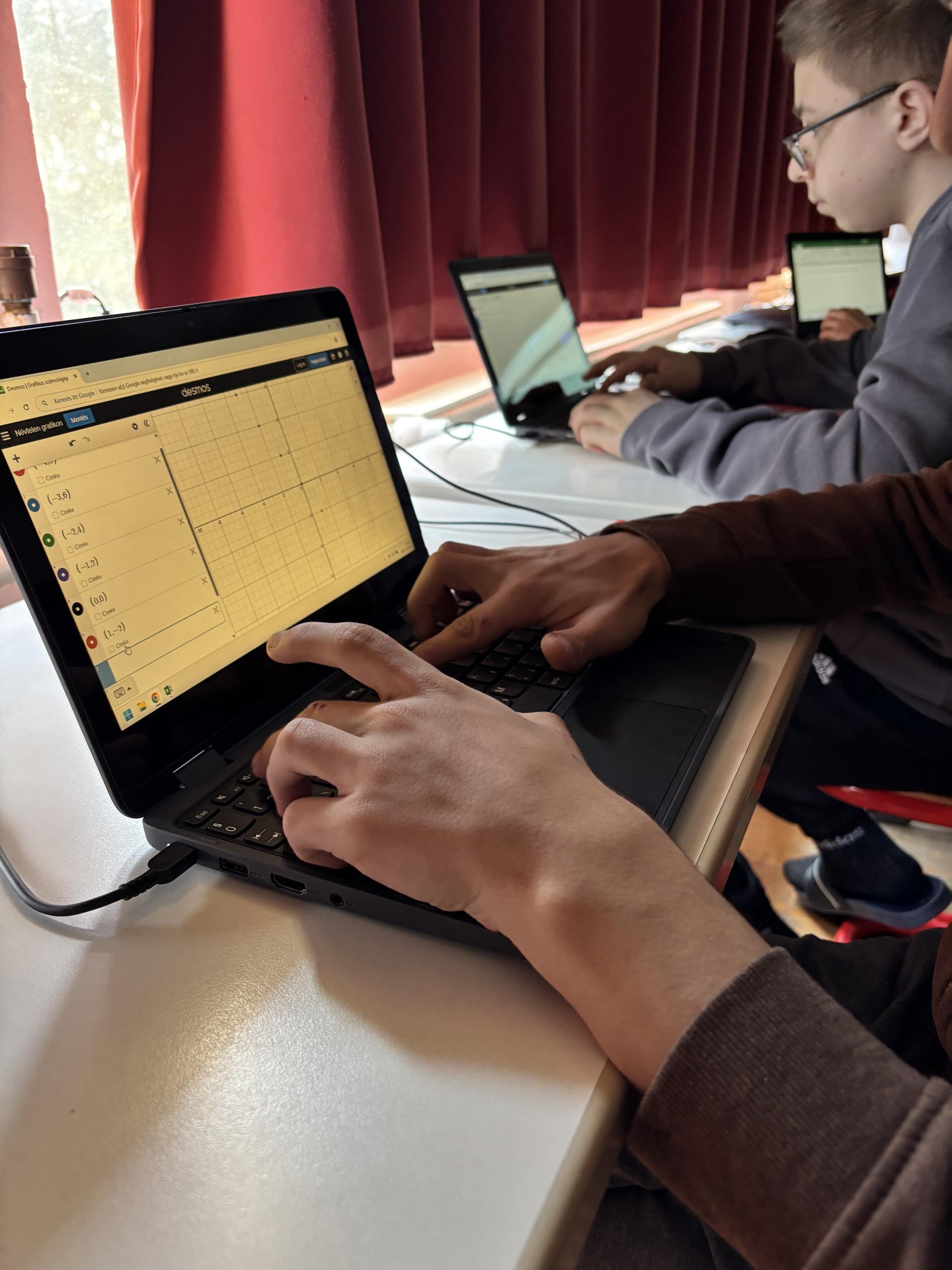A digitális témahét alatt a felsős tanulóknak lehetőségük volt, hogy olyan digitális eszközöket alkalmazzanak a tanórákon, tanári felügyelet mellett, amik nagyban segítik az adott tananyag rögzülését és emellett leegyszerűsítik a tanórai jegyzetelést, szerkesztést és ábrázolást. Matematikából a függvényábrázolást, geometriai szerkesztéseket, saját jegyzetet készíthettek a gyerekek az iskola notebookjain. Megismerkedtek olyan programokkal, szoftverekkel, gyorsbillentyűkkel, amik segítségével a tanórai jegyzetelés, otthoni tanulás, de még az iskolatáska is könnyebb lehetne.