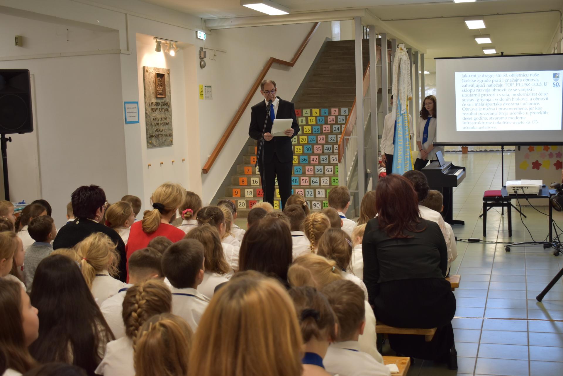 Iskolánk 1975-ben épült, így ebben az évben ünnepeltük 50 éves jubileumát. Az ünnepélyt egybekötöttük a Zrínyi Katarina, iskolánk névadójának emléknapjával 2025. november 21-én. A nyolcadikosok megható megemlékezése után ünnepi köszöntőt mondott Trojkó Zsolt, iskolánk igazgatója, Magyar Ferenc, a Nagykanizsai Tankerületi Központ igazgatója, Cseresnyés Péter országgyűlési képviselő és Gugán János az Országos Horvát Önkormányzat elnöke, aki az 50 éves évforduló alkalmából emléklapot adott át iskolánknak. Megemlékeztünk iskolánk egykori igazgatóiról: Fekete Imréről, Blazsetin Istvánról, Tislér Jolánról. Az ünnepségen szeretettel köszöntöttük Tislérné Biskopics Máriát, iskolánk korábbi igazgatóját. A jubileumi műsorban fellépett Szalai Gábor zongoraművész, iskolánk egykori tanulója, majd a „ Lepi glas se čuje“ körzeti horvát énekverseny díjátadójával folytatódott a program. Az első osztályosok és iskolánkba újonnan érkező tanulók eskütételével, majd koszorúzással zárult az ünnepély. Zrínyi Katarina domborművénél kialakított emlékfalnál az osztályok képviselői és iskolavezetés helyezték el a koszorúikat. Az ünnepi megemlékezés állófogadással zárult.