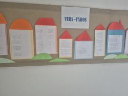 A költészet napi ünnepség kísérő programja volt a 8. osztályosok „Vers-város” kiállítása, melyet dráma-színház órán állítottak össze kedvenc verseik kéziratából.