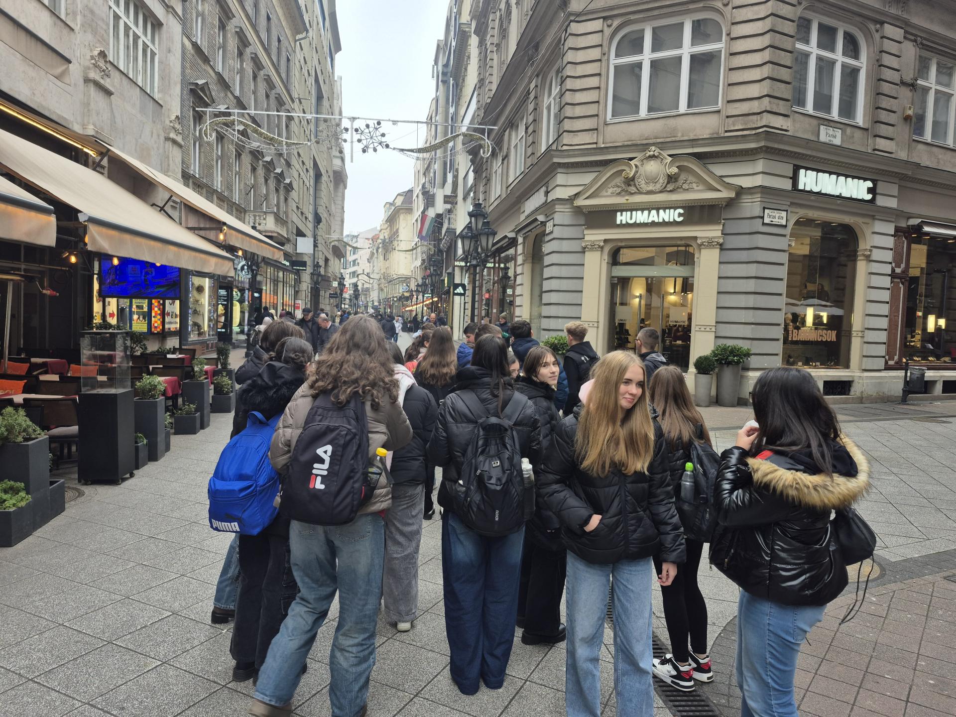 8 osztályosainknak még az előadás előtt elsétáltak a Váci utcán át a Vörösmarty téri karácsonyi vásárra, onnan földalattival a Városligetbe. A fővárosi barangoló séta során kísérő volt Pusztai Boglárka, iskolánk egykori tanulója, aki Budapesten egyetemi hallgató és a nyolcadikos Pusztai Ádám nővére.