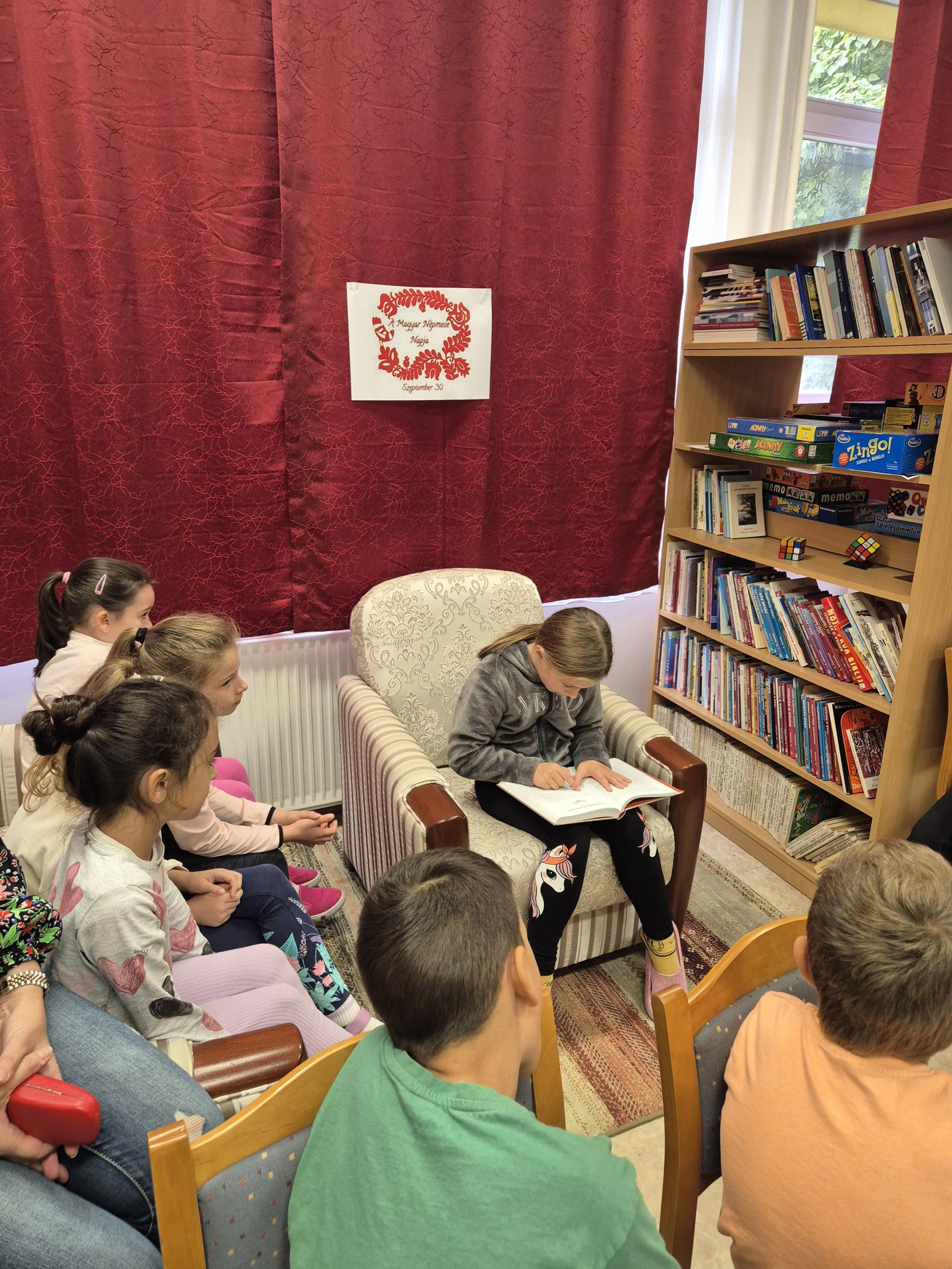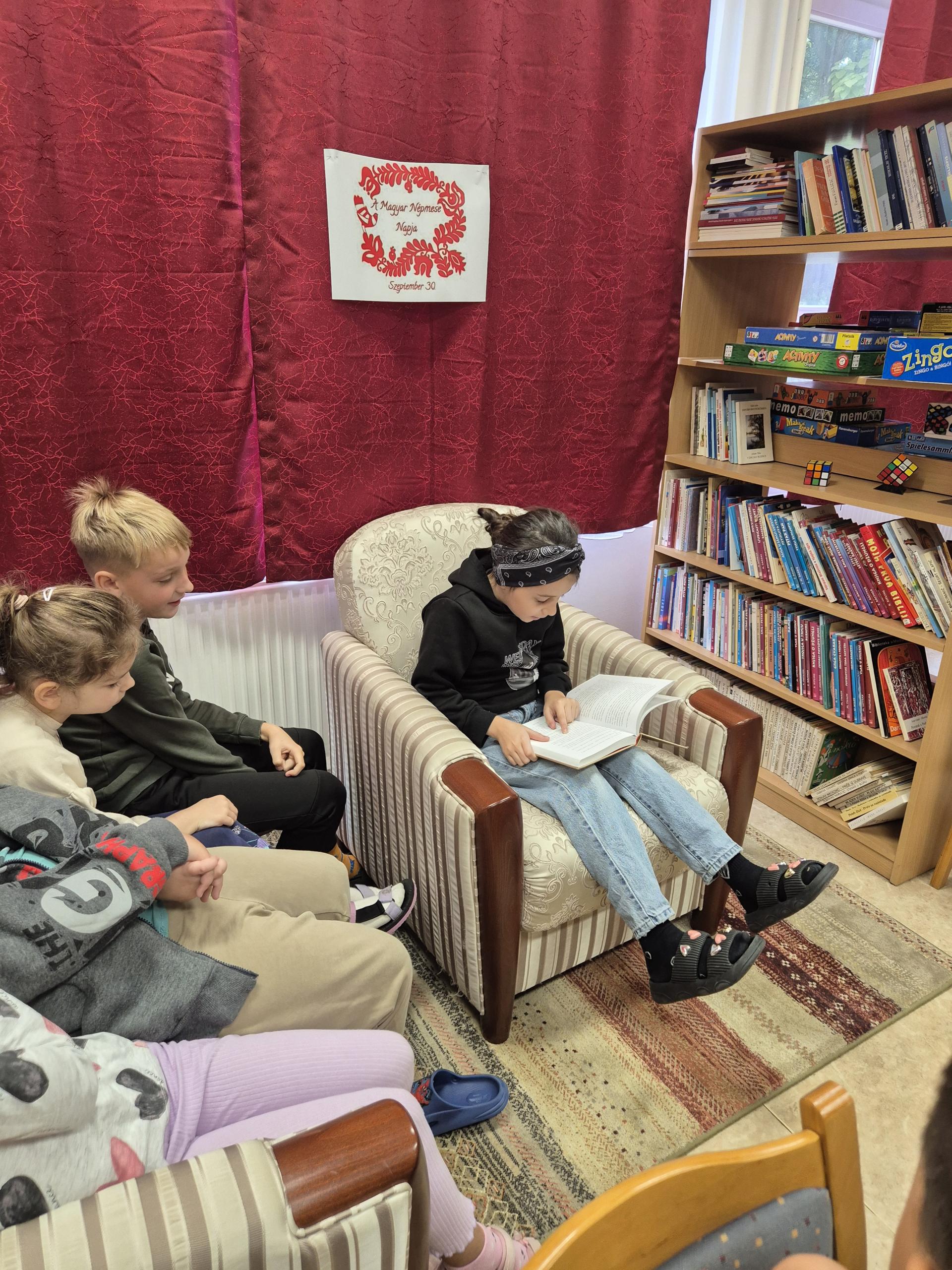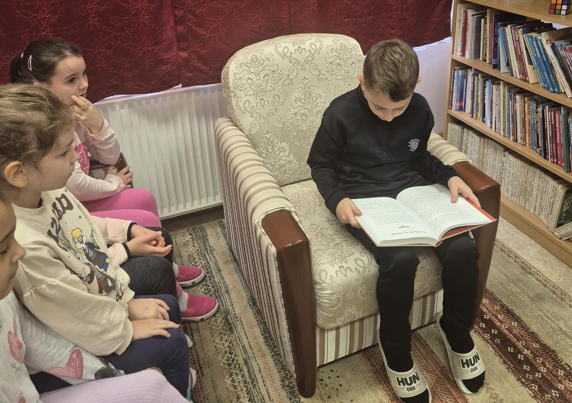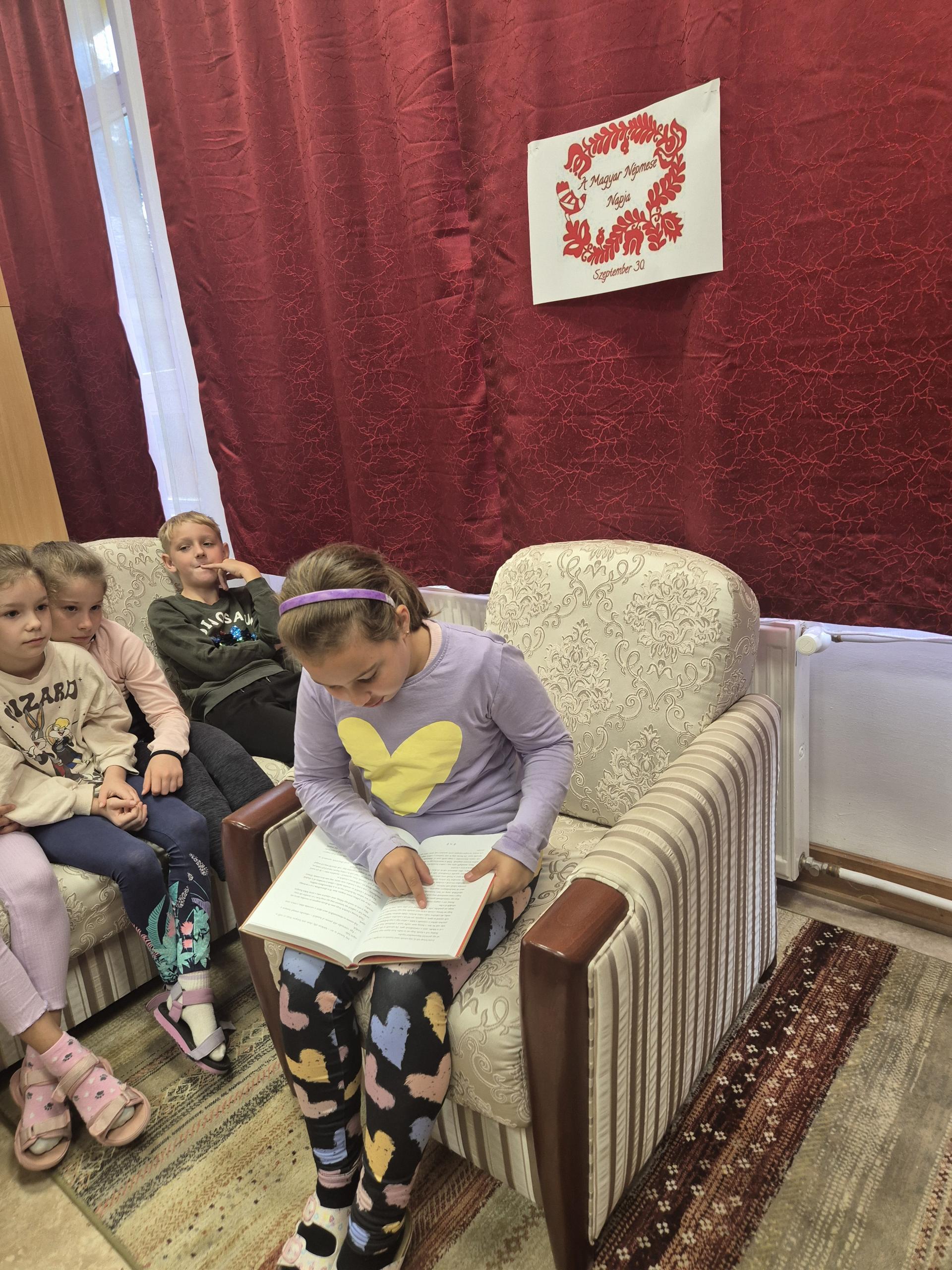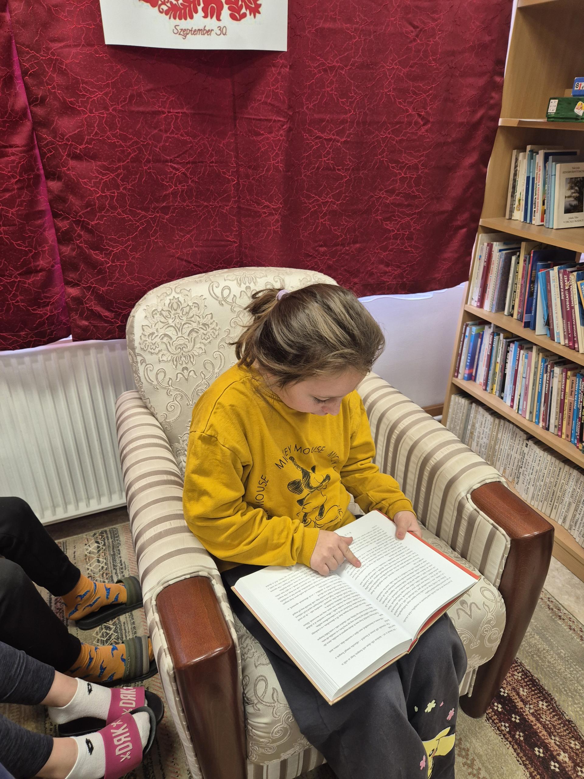 Rendhagyó könyvtári órán 3. osztályos tanulóink meséket olvastak fel a magyar népmese napján, szeptember 30-án. A mesélők egy kényelmes mesefotelba ülhettek és olvashatták fel kedvenc meséjüket osztálytársaiknak. A mesefelolvasás egész órán át tartott, a gyerekek folyamatosan adták át a helyet a mesefotelben.