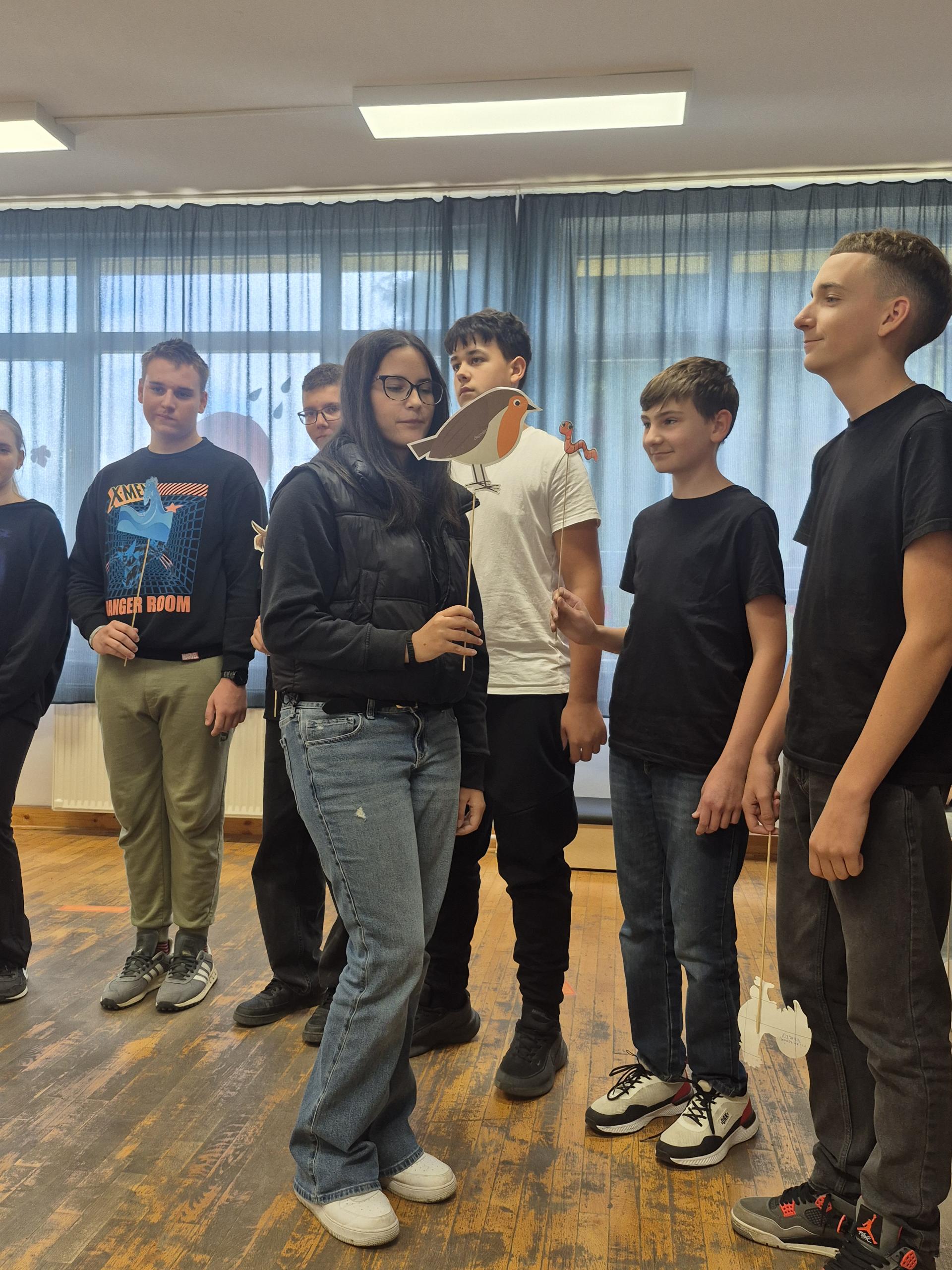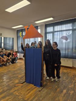 A magyar népmese napjához kapcsolódóan iskolánk legnagyobbjai a legkisebbeknek meséltek. Nyolcadik osztályos tanulóink a dráma-színház órákon lelkesen készültek és 4 bábjátékkal lepték meg az elsősöket, akik nagyon lelkes, figyelmes és hálás közönség voltak. A meseelőadás jó hangulatban a gyerekek közös éneklésével zárult.