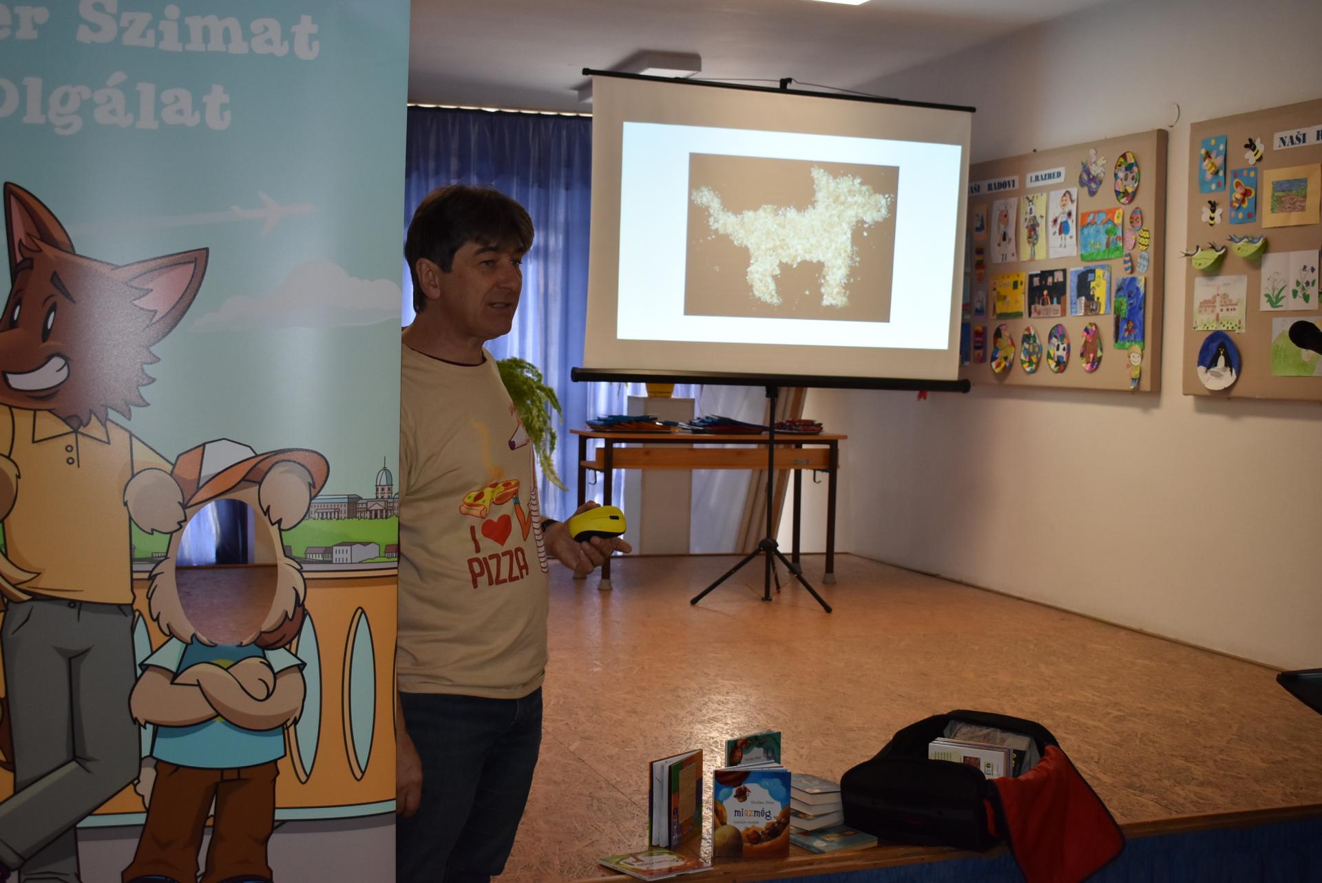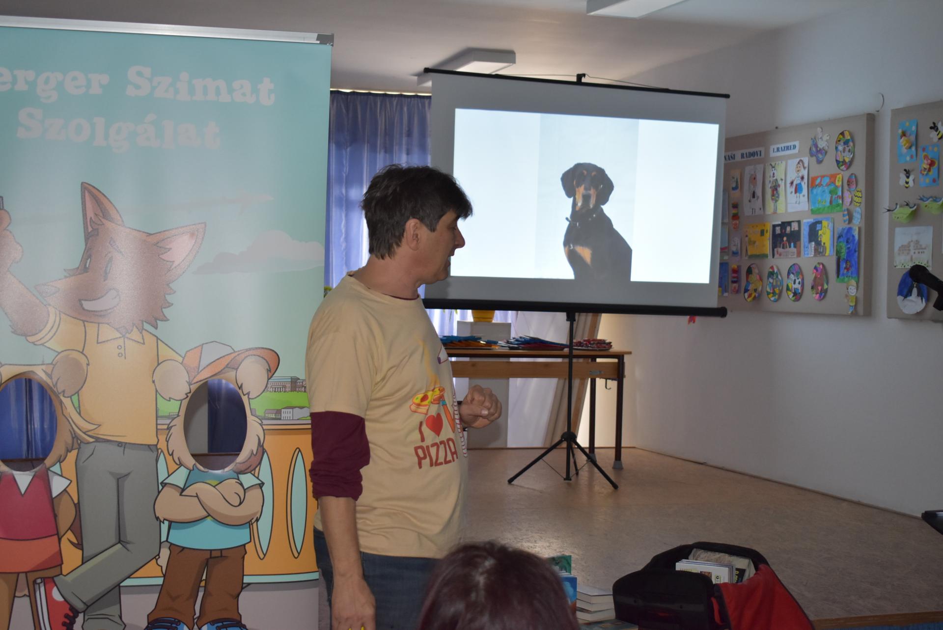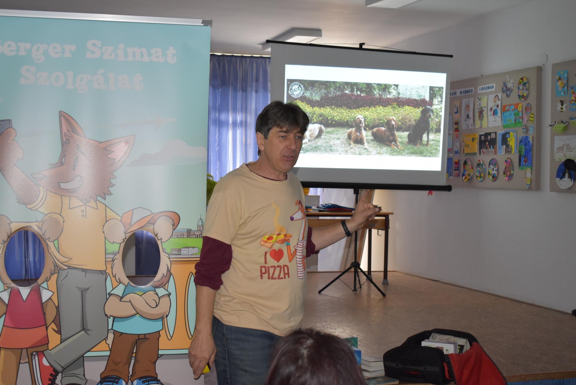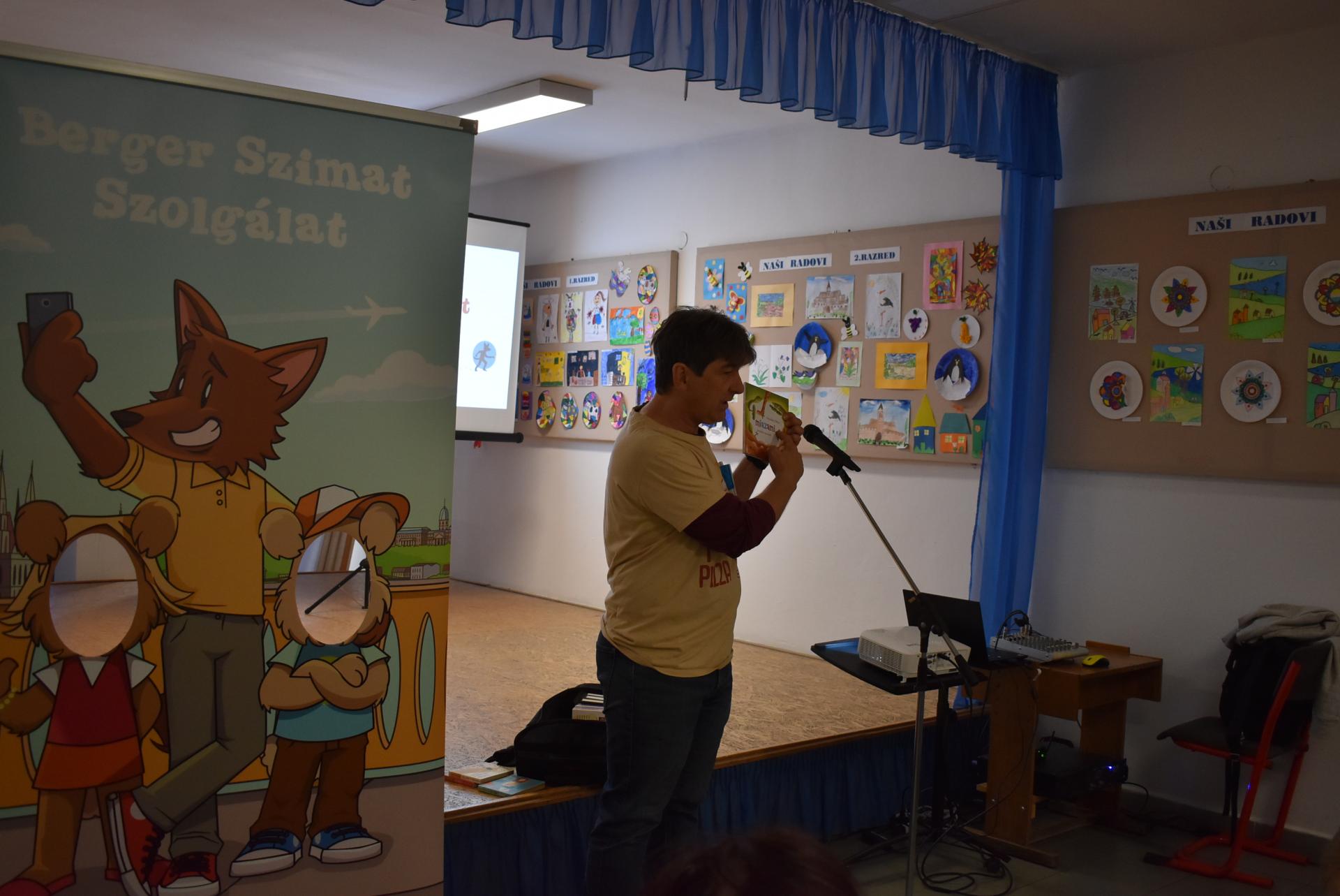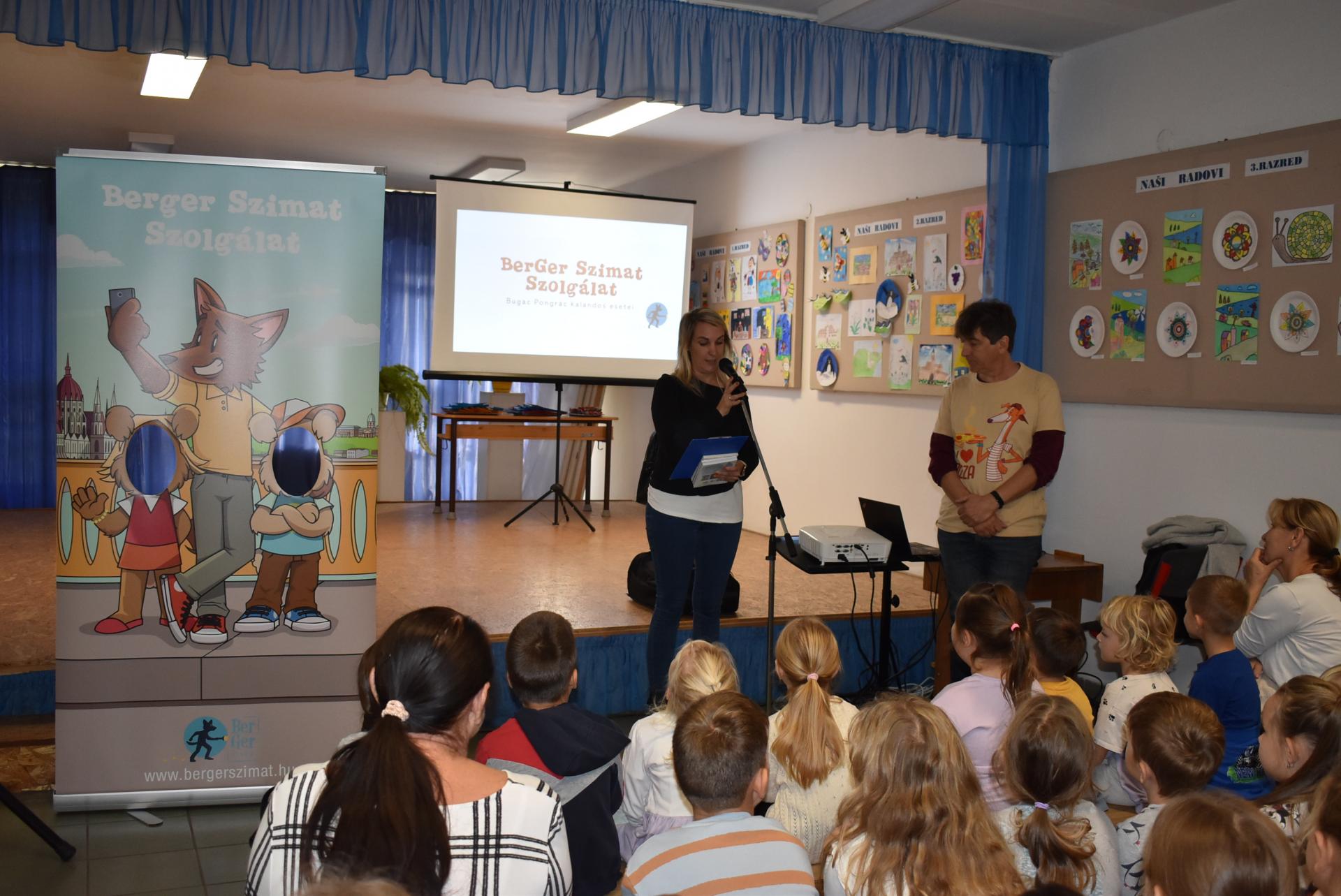 A szerző iskolánkban a BerGer Szimat Szolgálat detektívkutyás sorozatát mutatta be, ami tele van humorral, izgalommal és amit a gyerekek nagy érdeklődéssel fogadtak.