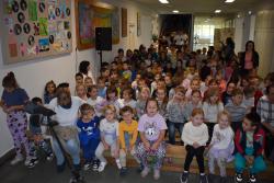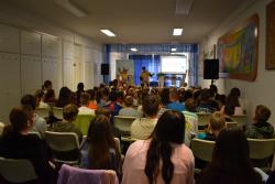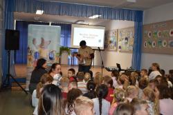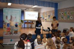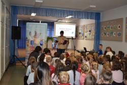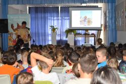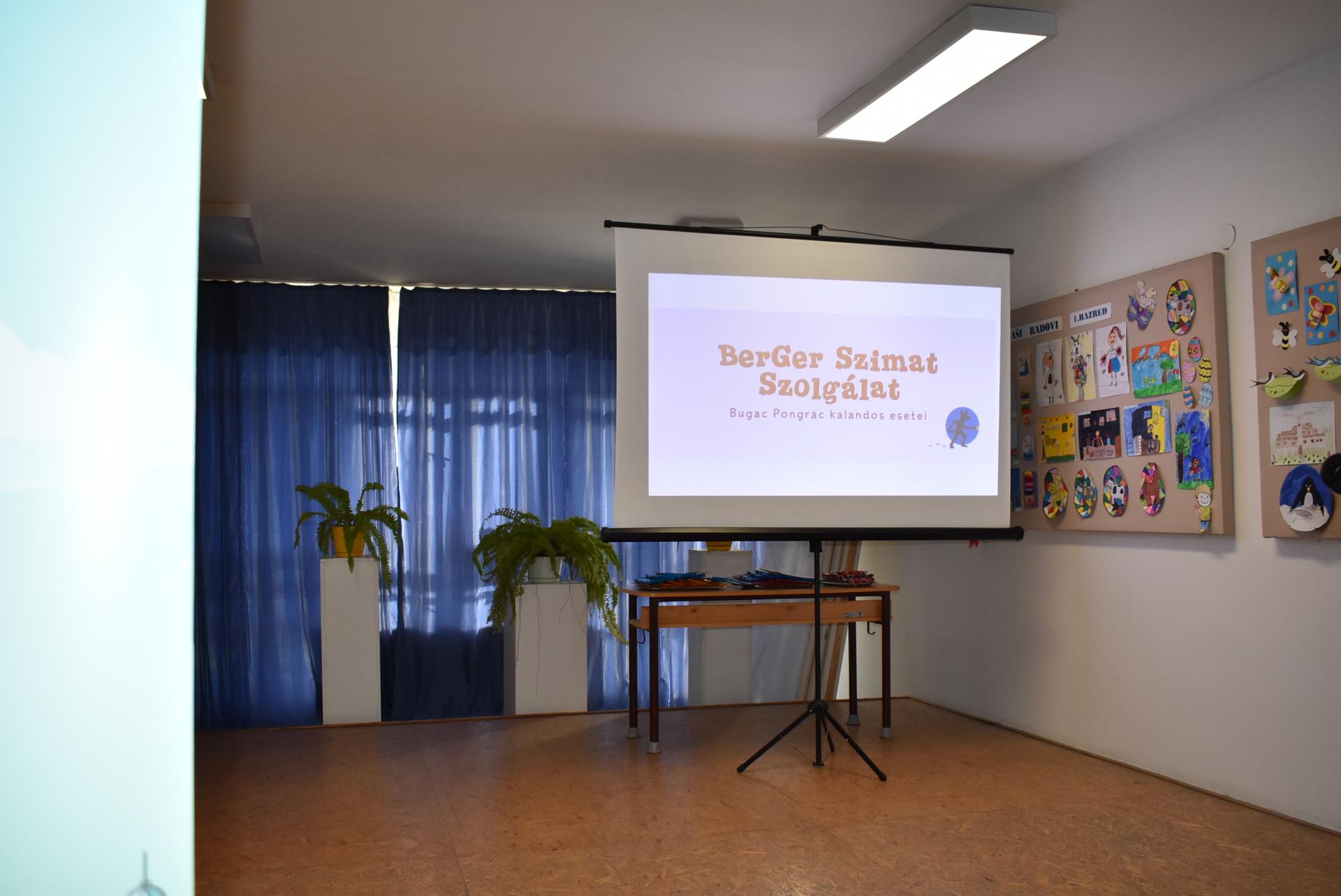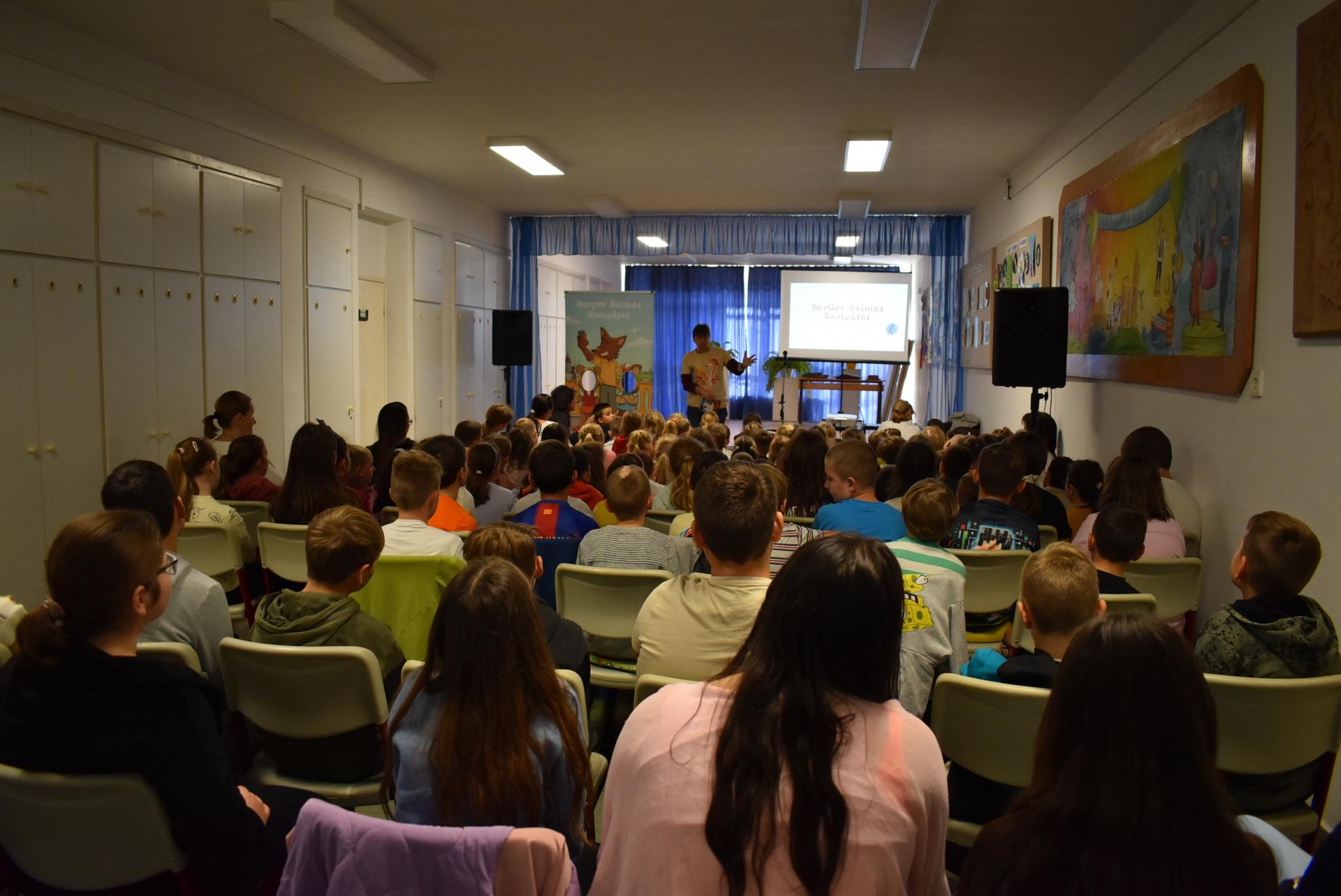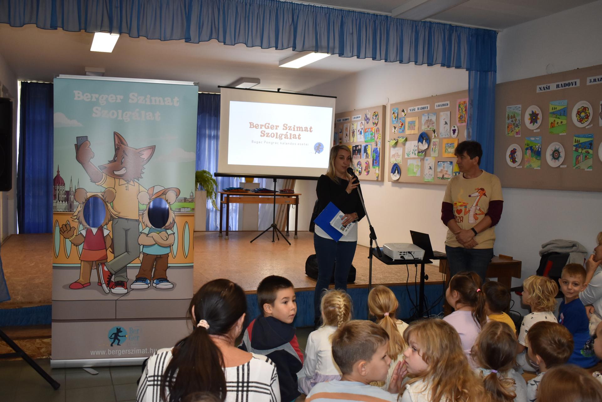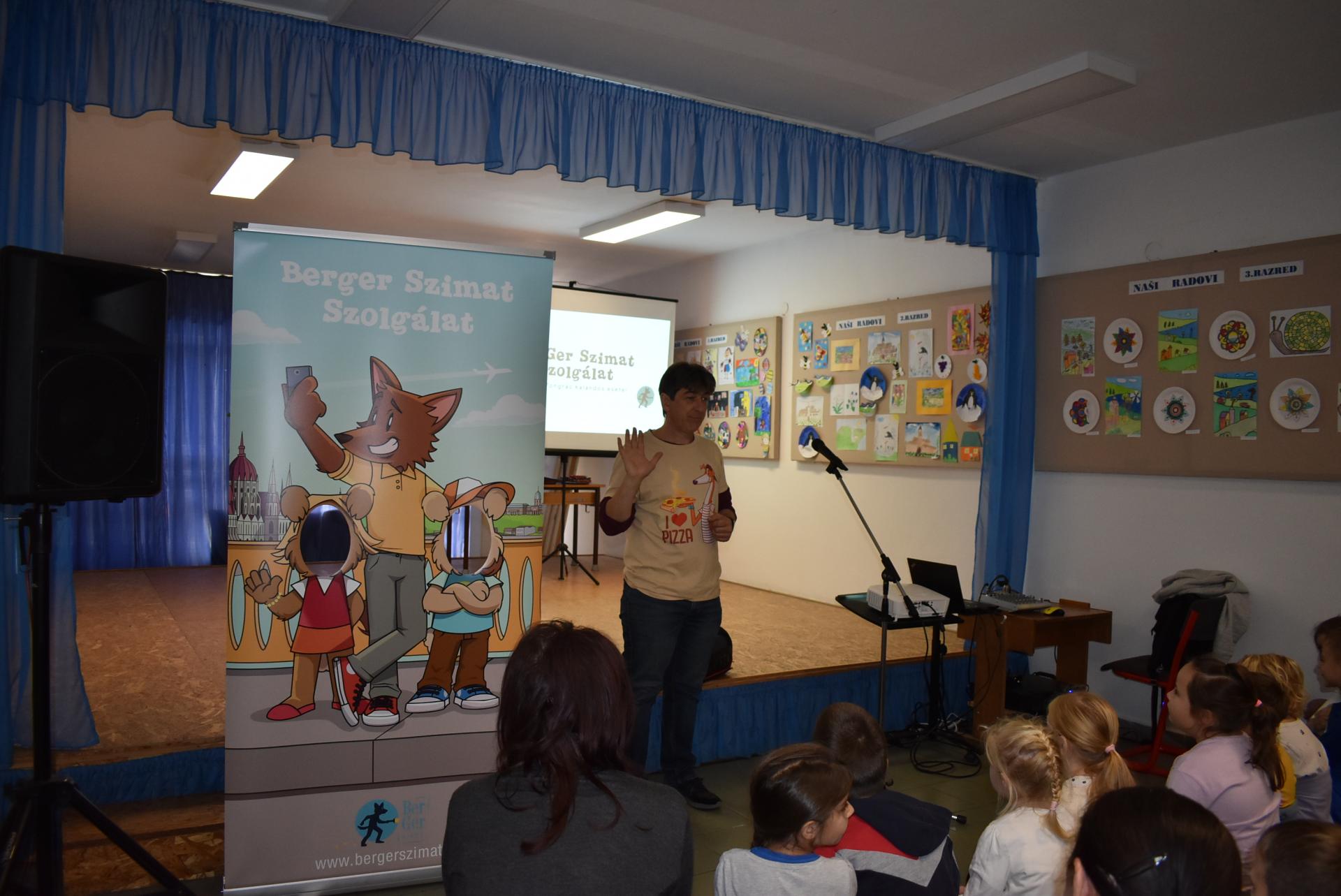 A szerző iskolánkban a BerGer Szimat Szolgálat detektívkutyás sorozatát mutatta be, ami tele van humorral, izgalommal és amit a gyerekek nagy érdeklődéssel fogadtak.