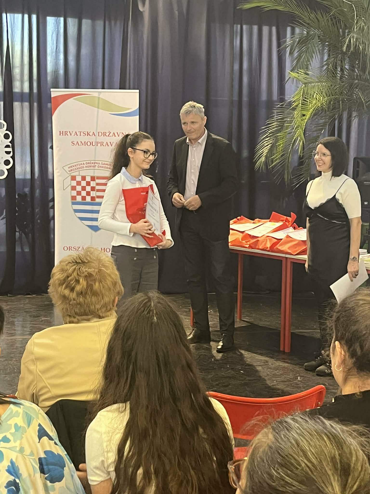 A horvát nyelvű szavalóverseny iskolai fordulóján 4 tanulónk ért el I. helyezést: Proszenyák Zóra (2.o.), Chiappin Laura (3.o.), Lancsák Patrik (6.o.) és Csire Zselyke (8.o.). Ők jutottak tovább az Országos horvát nyelvű szavalóversenyre, melyet Budapesten rendeztek meg 2026.03.18-án.