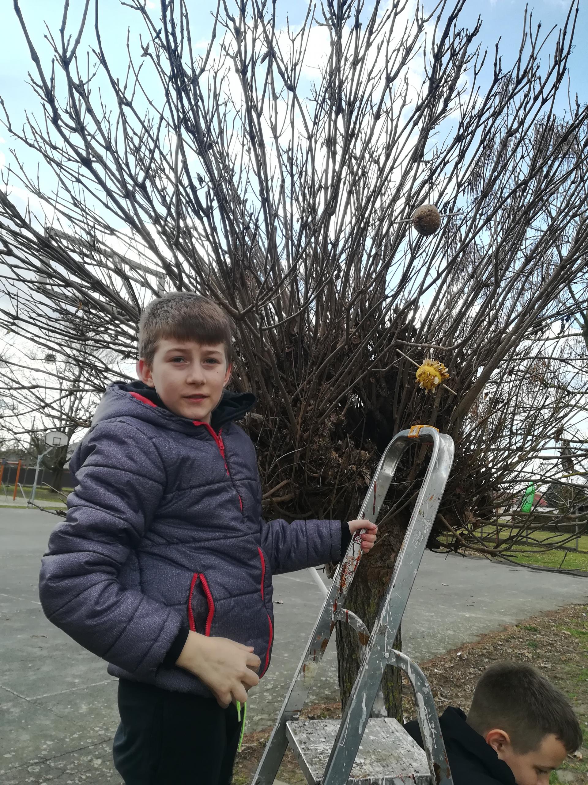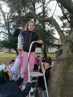 Iskolánk örökös ÖKO-iskola. Fontosnak tartjuk a természetvédelmet, és a környezettudatos magatartás kialakítását tanulóinkban. Lelkes negyedikeseink még a tél folyamán újrahasznosítható anyagok felhasználásával ötletes madáretetőket készítettek, majd megtöltve madáreleséggel, ki is helyeztek az iskolaudvar fáira.