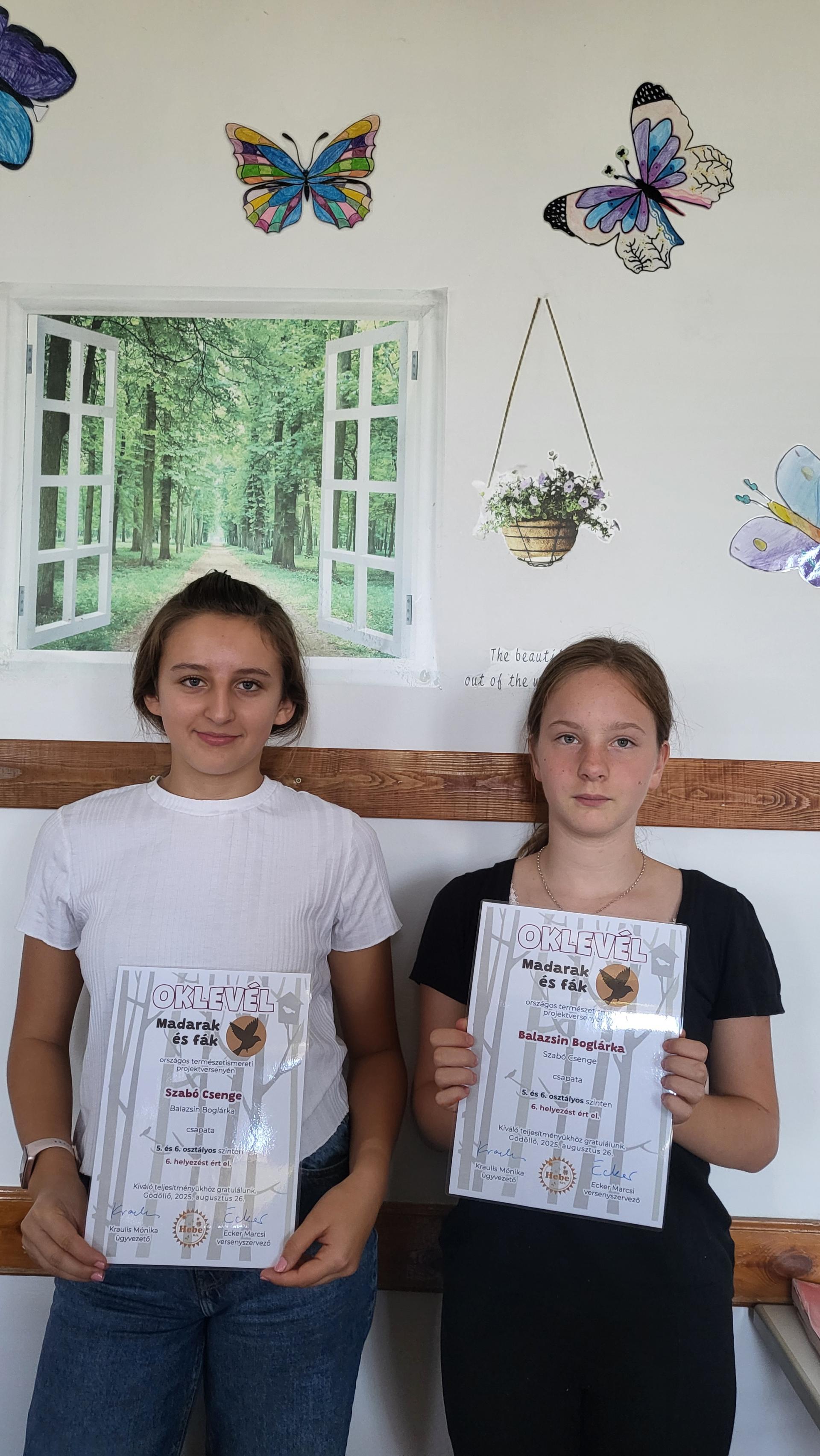 A Madarak és fák valamint a Minden a dinókról levelező verseny munkalapjainak beadási határideje már a nyárra esett. Épp ezért még nagyobb elismerés azoknak a gyerekeknek, akik már a forróságba hajló „pihenőnapokon” energiát fektettek abba, hogy bújják az internetet, készítsenek madáritatót vagy fosszíliát, törjék a fejüket egy dinórezervátum felállításáról vagy a készítsenek plakátot a kedvenc fájukról. Nagy volt az öröm, mert a nyári munka meghozta gyümölcsét. A Madarak és fák versenyén 5-6. osztályosok között Tkálecz Lia és Tkálecz Zselyke 8. helyezett lett, Balazsin Boglárka és Szabó Csenge 6. helyen végzett. A Mindent a dinókról versenyen Balassa Ákos egyéni versenyzőként indult, 11. lett. A 10-12 évesek kategóriájában 3. lett a Zadravecz Dusán, Andróczi Noé párosa, a 2. helyen pedig Novák Marcell és Steyer Levente végzett.
